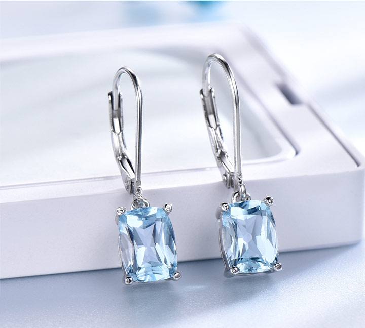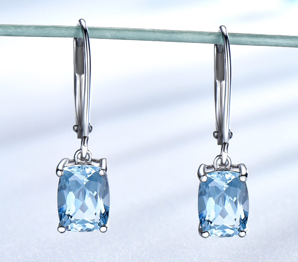 Aretes de Plata S925 enchapado en Platino con incrustación de Topacio.