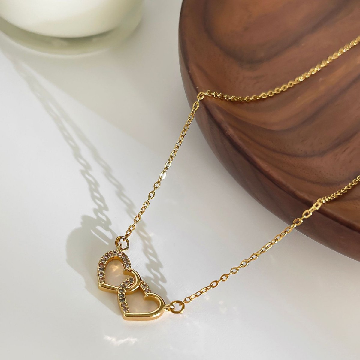 Collar de Acero Inoxidable 316 enchapado en Oro de 18k con incrustaciones de Circonita.