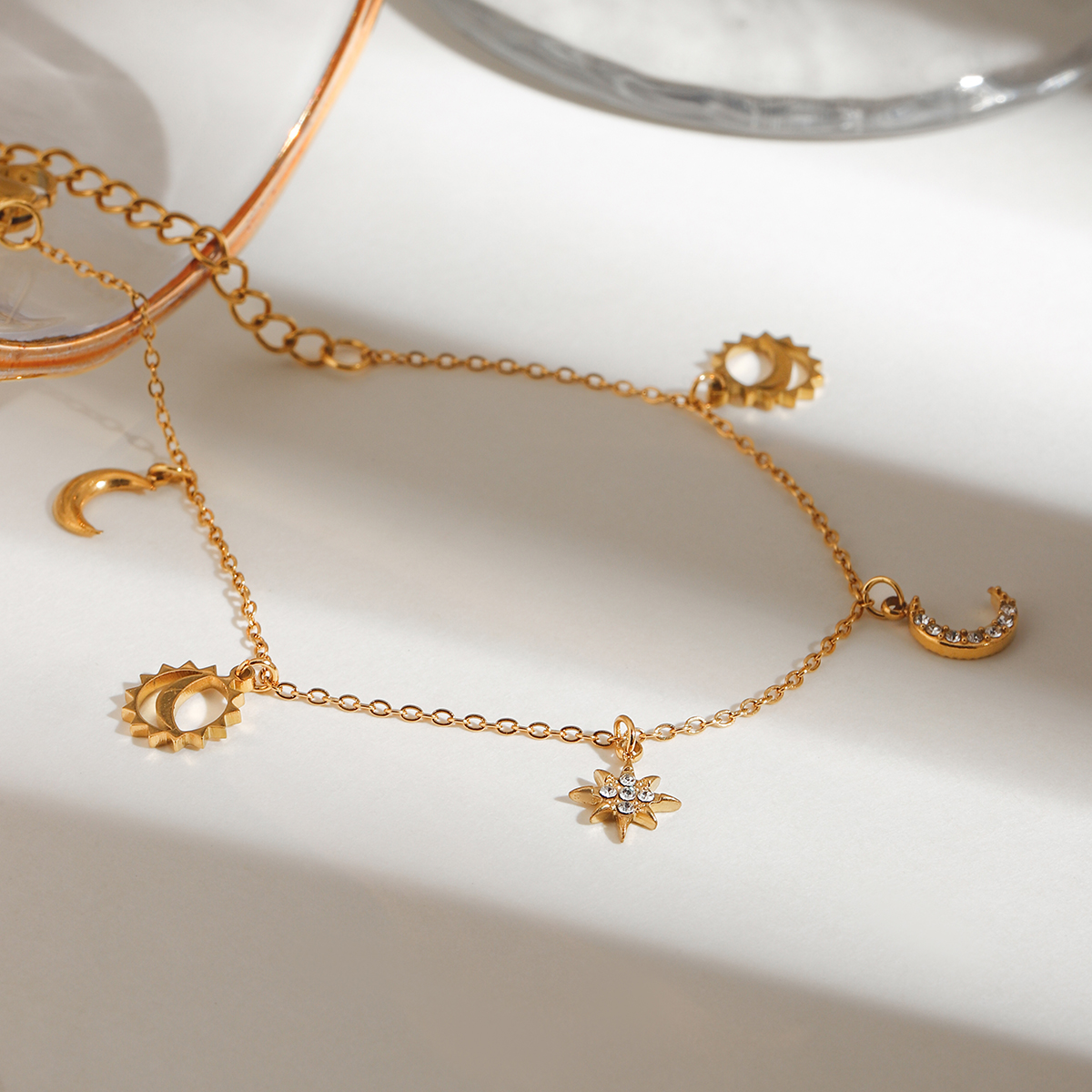 Pulsera de acero Inoxidable 304 enchapado en oro de 18K con incrustaciones de Circonita.